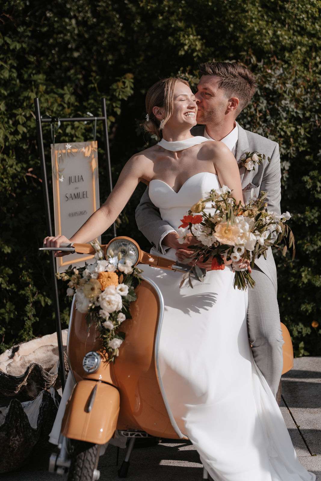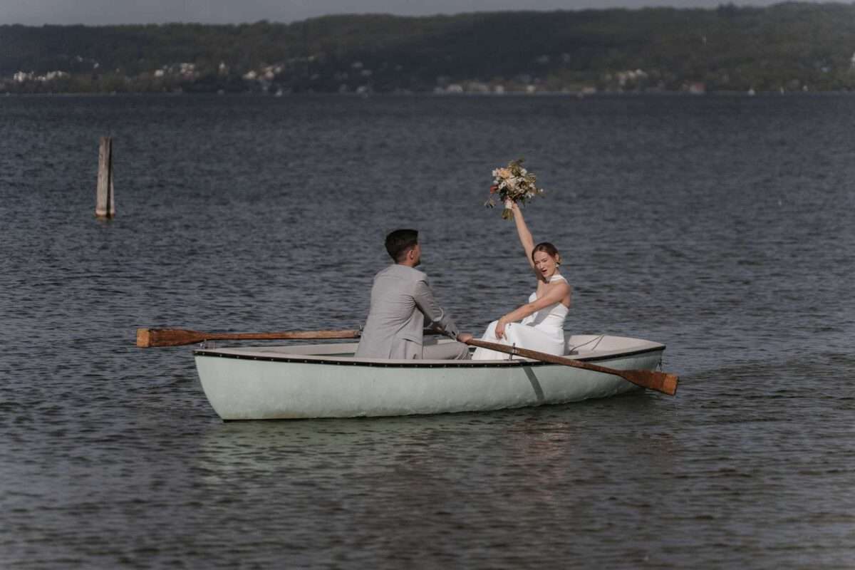 Diese Hochzeit im Mai am wunderschönen Ammersee stand ganz im Zeichen von Leichtigkeit und mediterranem Flair. Das Brautpaar verbindet eine große Leidenschaft: gemeinsame Fahrten mit der Vespa. Dieses persönliche Detail durfte natürlich auch in das Hochzeitskonzept einfließen und verlieh der Feier eine ganz besondere, individuelle Note.