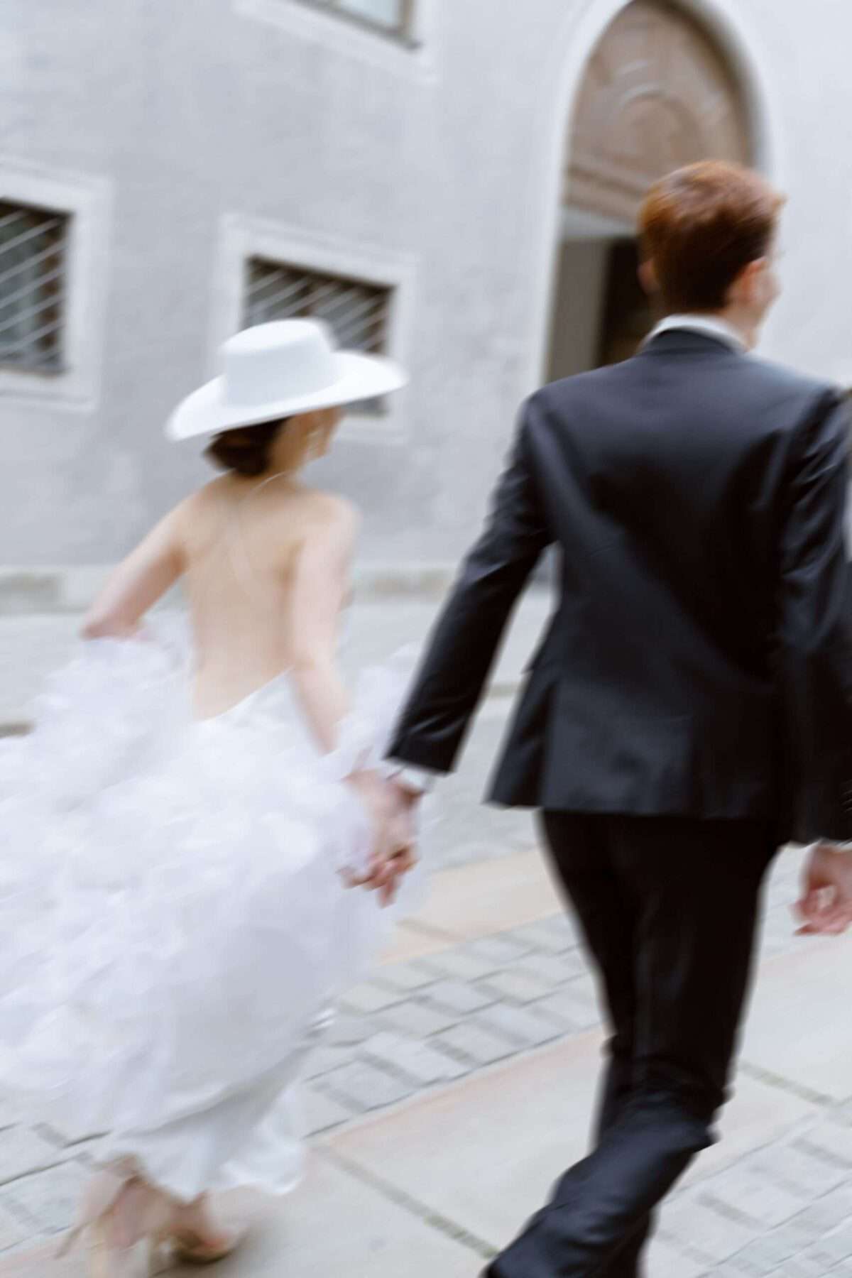 Ein Brautstrauss, der pure Eleganz verkörpert: weisse Phalaenopsis-Orchideen treffen auf sanft fallenden Amaranthus – eine Verbindung aus moderner Leichtigkeit und zeitloser Raffinesse.