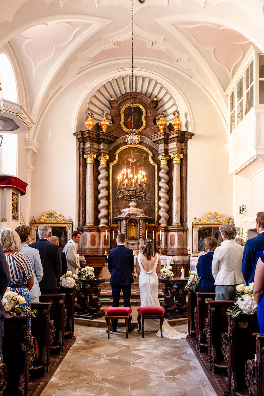 Diese stilvolle Hochzeit fand auf einem wunderschönen Schlossgut statt und vereinte klassische Eleganz mit einer romantischen Atmosphäre. Für die Trauung entschied sich das Brautpaar für eine kirchliche Zeremonie in einer kleinen, feinen Kapelle – ein sehr persönlicher Moment, der den perfekten Auftakt für diesen besonderen Tag bildete.